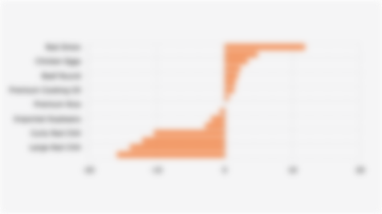 Price increases also occurred for chicken meat and eggs, bulk and premium cooking oil, beef, wheat flour, and bulk granulated sugar.