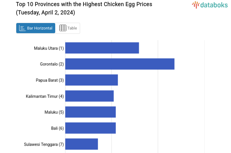 Chicken Egg Prices in North Maluku Highest in Indonesia (Tuesday, April 2, 2024)