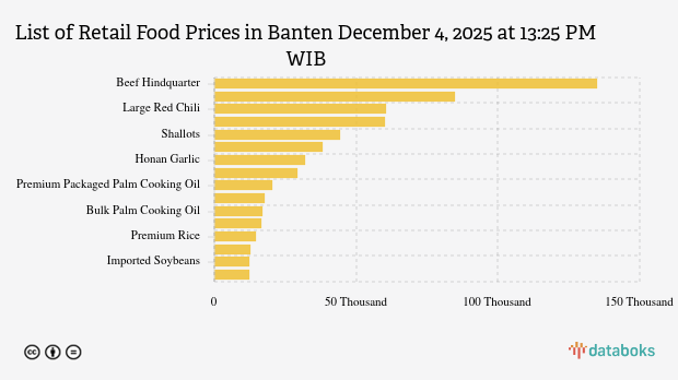 Here is the complete list of 16 food commodity prices in Banten according to SP2KP Kemendag on December 4, 2025 at 13:25 PM WIB.