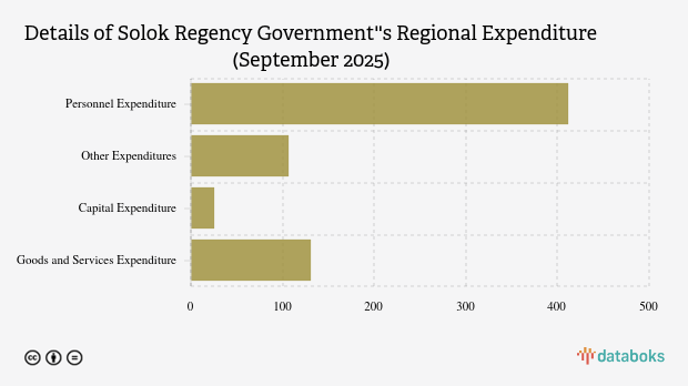 During the period of January 2025 to September 2025, the realization of Solok Regency Government''s Regional Expenditure reached Rp674.11 billion or equivalent to 51.31% of the 2025 Regional Expenditure budget.