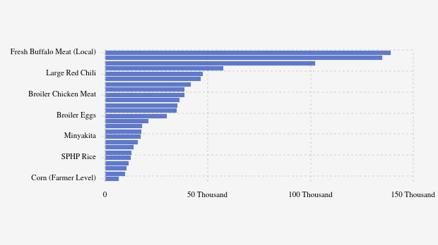 Meanwhile, prices of several commodities such as frozen buffalo meat (imported), consumption salt, pure beef, premium rice, and fresh buffalo meat (local) decreased compared to yesterday's prices.