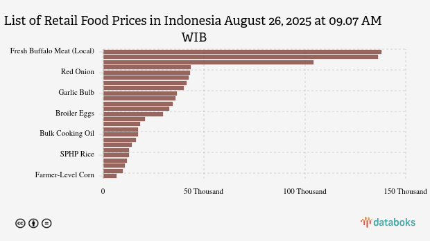 - Fresh Buffalo Meat (Local): Rp138,095 per kg (down 1.7%)