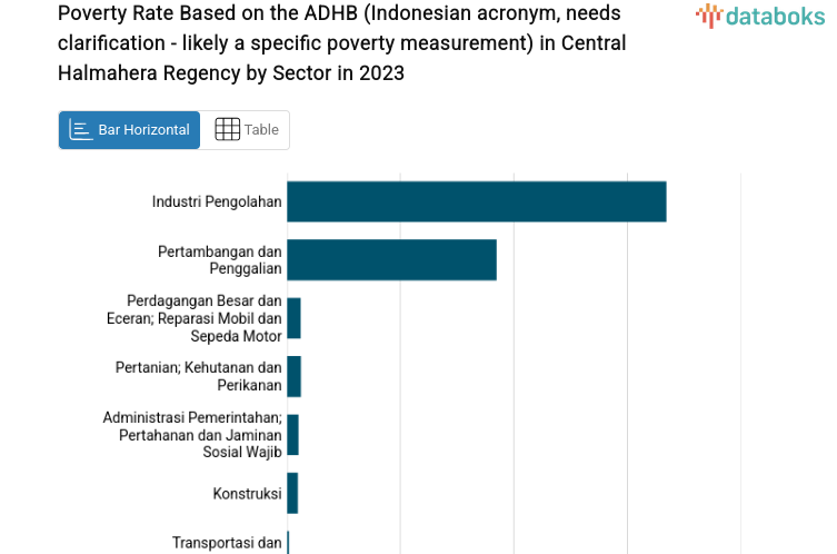 Poverty Rate Based on the ADHB (Indonesian standard for poverty measurement) in Central Halmahera Regency by Sector in 2023