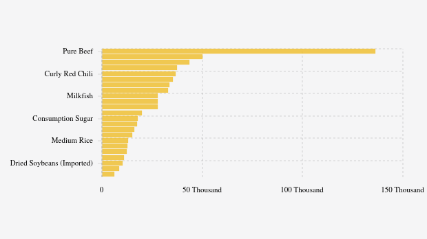 Shallots saw the highest jump of Rp614 (1.24%) to Rp50,259 per kg. Meanwhile, the price of large red chili dropped the sharpest by Rp1,710 (4.95%) to Rp32,846 per kg.