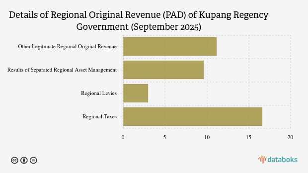 For the period of January 2025 to September 2025, the realization of Kupang Regency Government's PAD was Rp40.38 billion, or equivalent to 49.99% of the 2025 PAD budget.