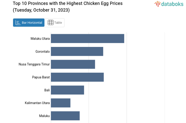 10 Provinces with the Highest Chicken Egg Prices (Tuesday, October 31, 2023)