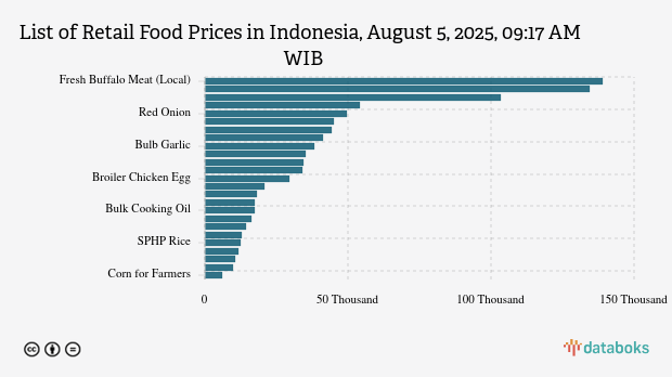 - Fresh Buffalo Meat (Local): Rp139,038 per kg (1.57% decrease)