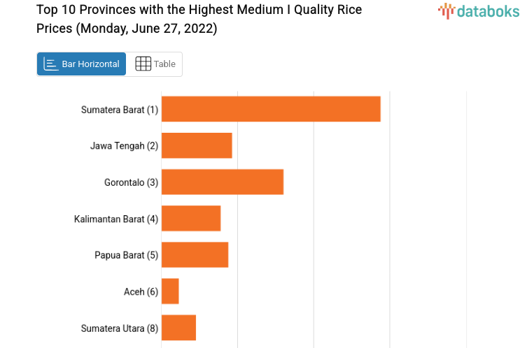 10 Provinces with the Highest Prices for Medium I Quality Rice (Monday, June 27, 2022)