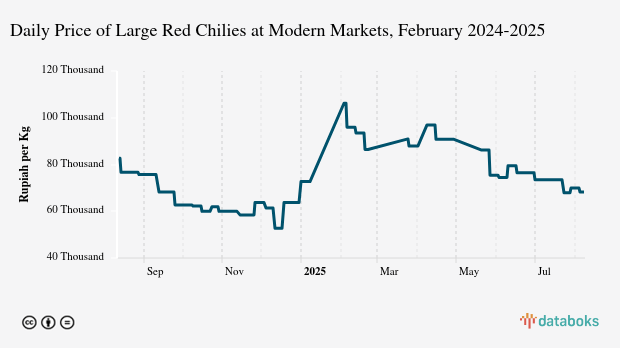Meanwhile, the daily price of large red chilies in modern markets in DKI Jakarta over the past three months has increased by 26.76% from the previously recorded price of Rp68,200 per kg.