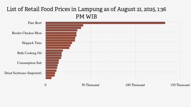 Here is the complete list of 23 food commodity prices in Lampung according to Bapanas as of August 21, 2025, 1:36 PM WIB.