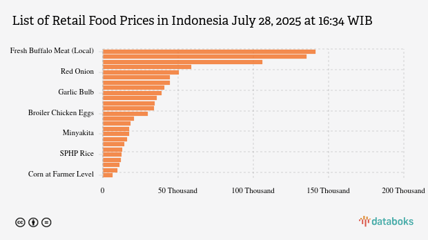 - Fresh Buffalo Meat (Local): Rp141,136 per kg (down 0.48%)