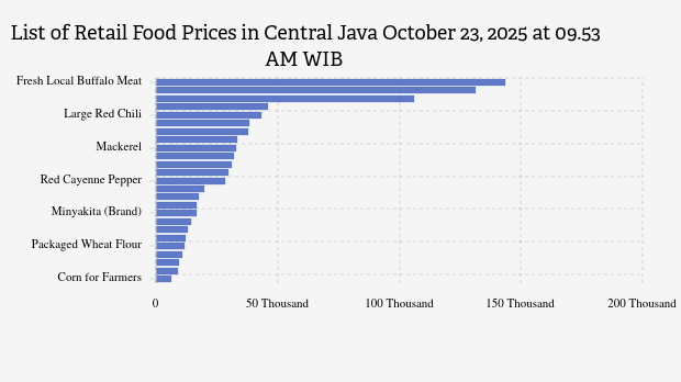 Here is the complete list of 25 food commodity prices in Central Java according to Bapanas on October 23, 2025, at 09.53 AM WIB.
