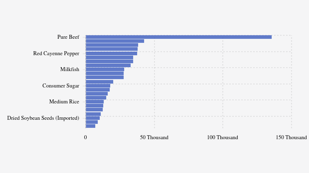 The price of large red chili rose the most by Rp659 (1.94%) to Rp34,552 per kg. Meanwhile, shallot prices dropped the deepest by Rp1,387 (3.17%) to Rp42,371 per kg.