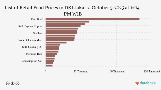 Here is the complete list of prices for 21 food commodities in DKI Jakarta according to Bapanas on October 3, 2025, at 12:14 PM WIB.