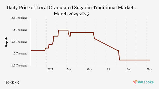 Compared to the price 30 days ago, the daily price of local granulated sugar in traditional markets has decreased from the previously recorded Rp18,000.