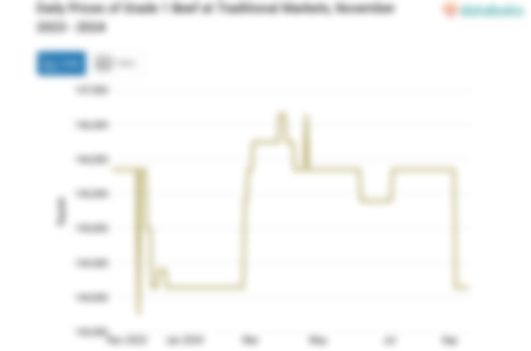 Compared to the price 30 days ago, the daily price of Grade 1 beef in traditional markets has decreased from Rp145,400.
