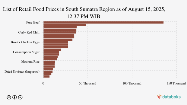 Below is the complete list of prices for 23 food commodities in South Sumatra according to Bapanas on August 15, 2025, at 12:37 PM WIB.