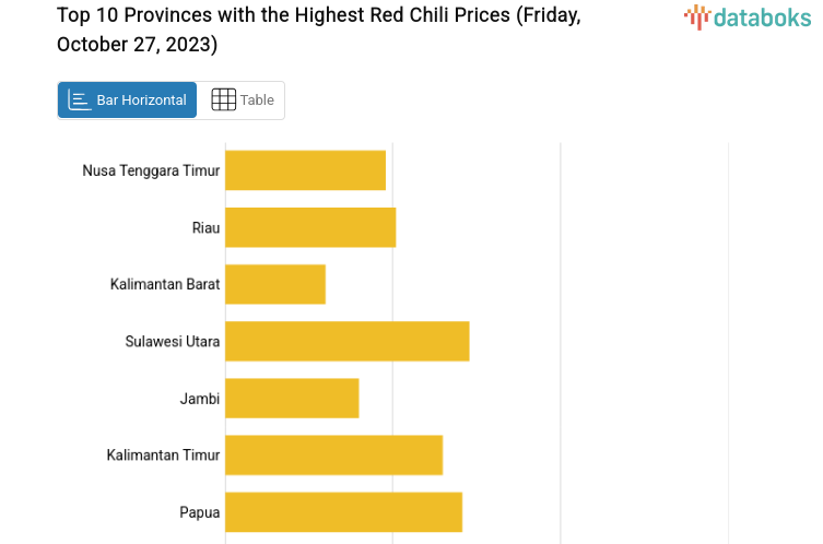 Red Chili Prices in East Nusa Tenggara Highest in Indonesia (Friday, October 27, 2023)