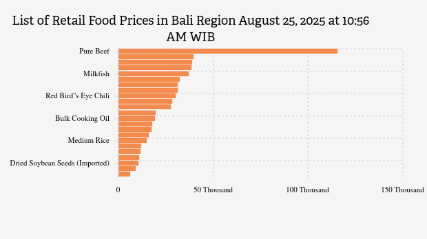 Here is the complete list of prices for 23 food commodities in Bali according to Bapanas on August 25, 2025, at 10:56 AM WIB.