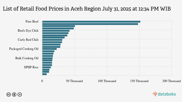 Below is the complete list of prices for 24 food commodities in Aceh according to Bapanas on July 31, 2025 at 12:34 PM WIB.