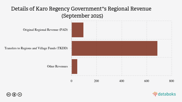 During the period from January 2025 to September 2025, the Karo Regency Government''s Regional Revenue realization was IDR 824.48 billion, or equivalent to 56.34% of the 2025 Regional Revenue budget.