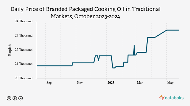 Compared to the price a month ago, the daily price of branded packaged cooking oil in traditional markets has increased from Rp20,900.