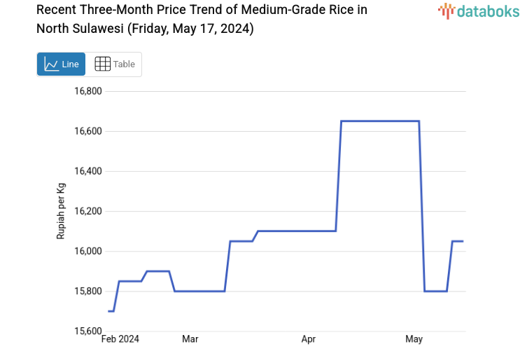 The price of medium-quality I rice in North Sulawesi increased by 1.58% in a week.