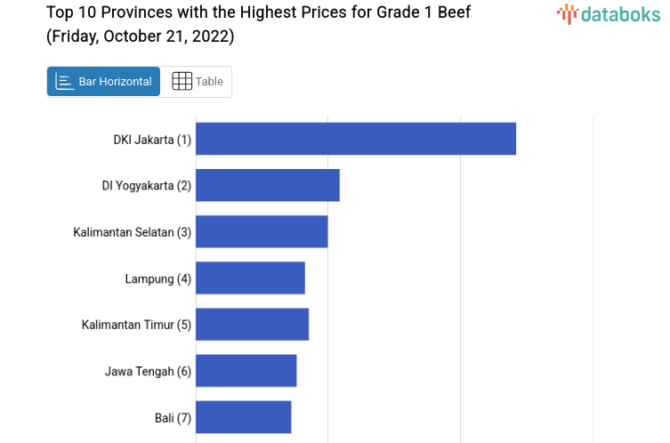 Beef Prices of Grade 1 Quality in Jakarta, DKI are the Highest in Indonesia (Friday, October 21, 2022)