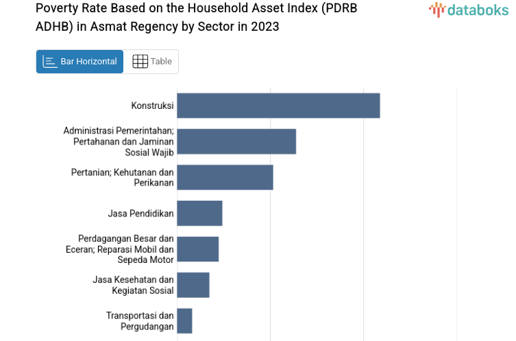 In terms of distribution, the construction sector contributed the largest share to GRDP growth in Asmat Regency, accounting for 31.92%. Other sectors in the top five include agriculture, forestry, and fisheries; public administration, defense, and compulsory social security; education services; and wholesale and retail trade, repair of motor vehicles and motorcycles.