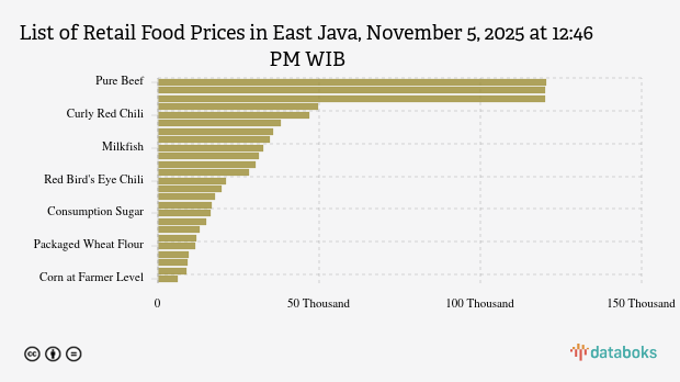 Here is the complete list of 25 food commodity prices in East Java according to Bapanas on November 5, 2025 at 12:46 PM WIB.