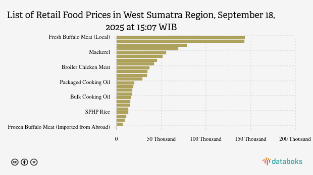 Below is the complete list of prices for 25 food items in West Sumatra according to Bapanas on September 18, 2025, at 15:07 WIB.
