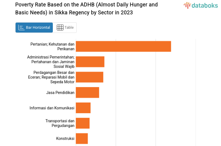 According to its distribution level, the main sector contributing the largest growth to the GRDP in Sikka Regency is the agriculture, forestry, and fisheries sector, with a contribution of 36.15%. Other sectors in the top five are public administration, defense and compulsory social security; wholesale and retail trade, repair of motor vehicles and motorcycles; information and communication; and education services.