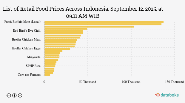 Below is the complete list of prices for 25 food commodities in Indonesia according to Bapanas on September 12, 2025, at 09.11 AM WIB.