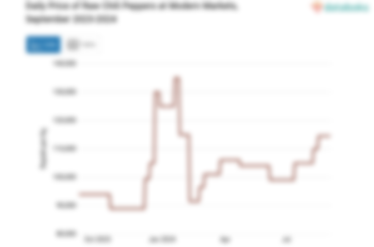 The highest recorded increase in the daily price of chili peppers in the province's modern markets was in November 2022, with a 41.49% increase, while the lowest decrease was recorded in September 2021, at -39.31%.