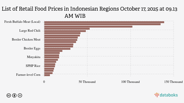 - Fresh Buffalo Meat (Local): Rp138,947 per kg (down 1.63%)