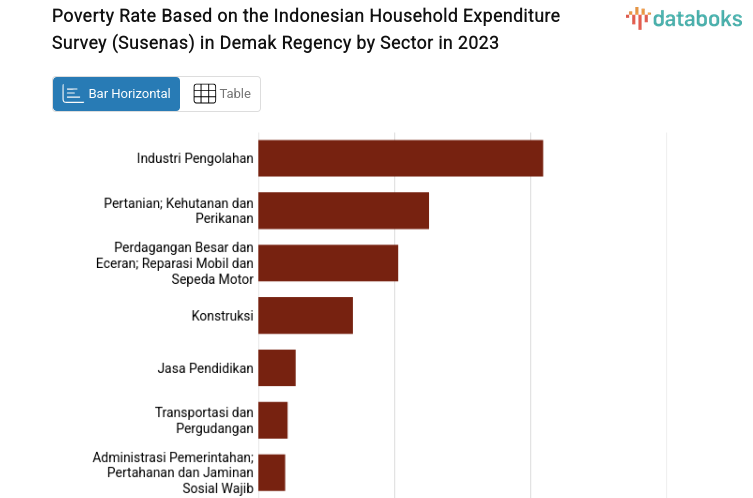 In terms of distribution, the main sector contributing the most to GRDP growth in Demak Regency is the manufacturing sector, with a contribution of 30.06%. Other sectors in the top five include agriculture, forestry and fisheries; wholesale and retail trade, repair of motor vehicles and motorcycles; construction; and education services.