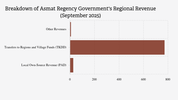 During the period of January 2025 to September 2025, the realized Regional Revenue of the Asmat Regency Government amounted to Rp803.82 billion, or 48.37% of the 2025 Regional Revenue budget.