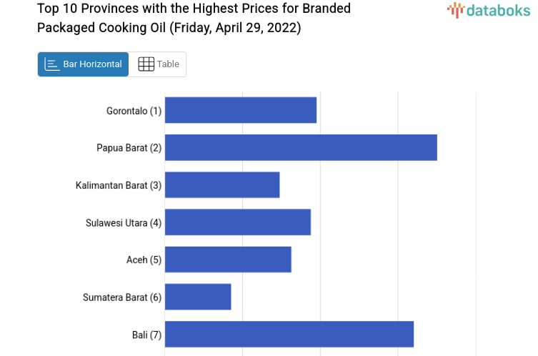 10 Provinces with the Two Highest Prices for Branded Packaged Cooking Oil (Friday, April 29, 2022)