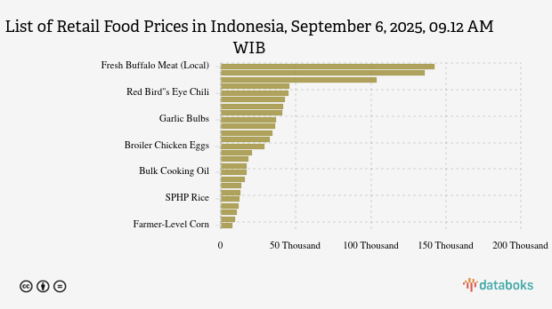 Below is the complete list of prices for 25 food commodities in Indonesia according to Bapanas on September 6, 2025, at 09.12 AM WIB.