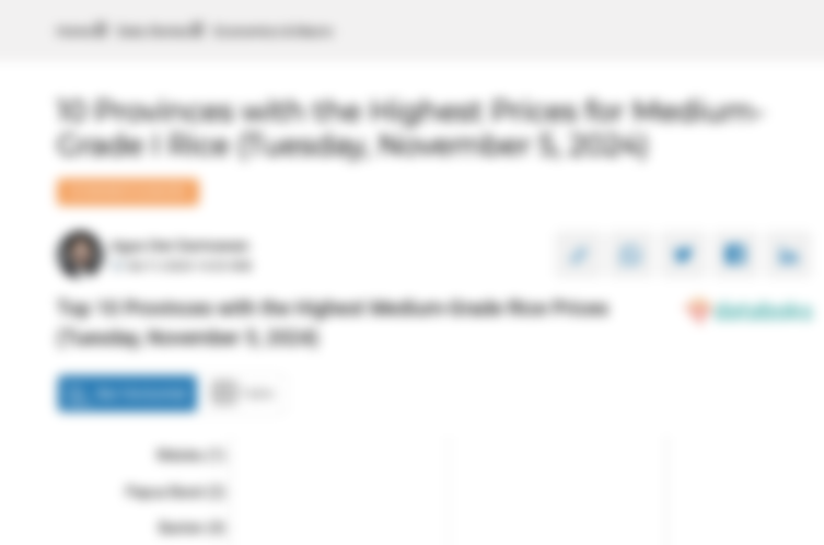10 Provinces with the Highest Prices for Medium-Grade I Rice (Tuesday, November 5, 2024)