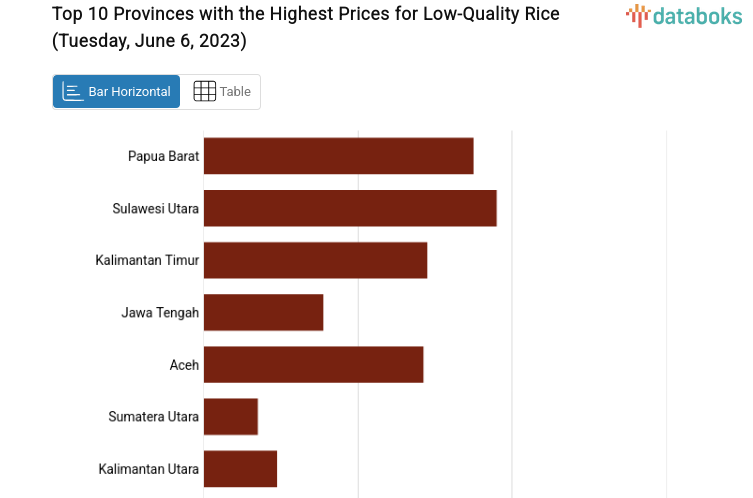 The price of low-quality rice type I in West Papua is Rp 14,350 per kg (Tuesday, June 6, 2023).