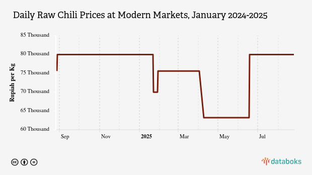 Compared to 30 days ago, however, the daily price of chili peppers in modern markets has decreased from the previous record of Rp75,600 per kg.