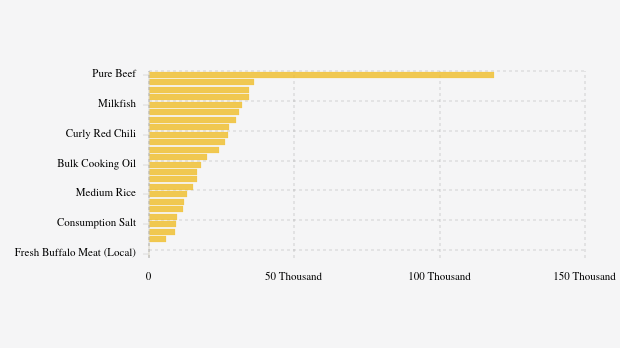 - Fresh Buffalo Meat (Local): Rp0 per kg (down 100.0%)