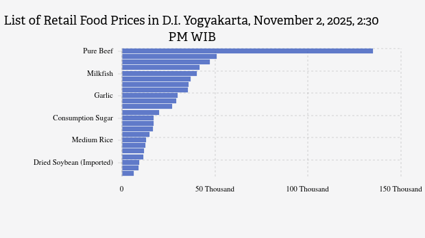 Here is the complete list of 23 food commodity prices in D.I. Yogyakarta according to Bapanas on November 2, 2025, at 2:30 PM WIB.