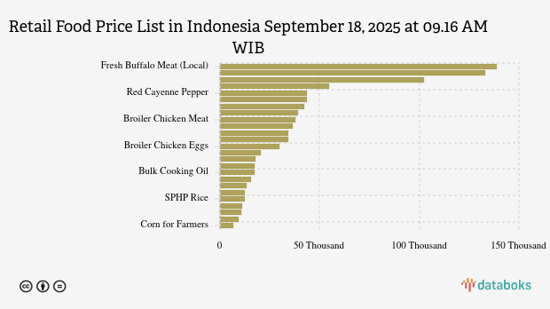 - Fresh Buffalo Meat (Local): Rp138,824 per kg (down 1.68%)