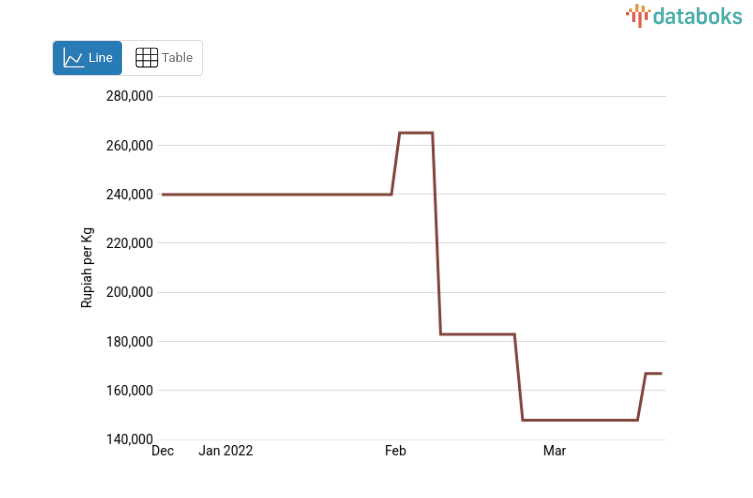 The price of Grade 2 beef in West Kalimantan increased by 12.85% in one week.