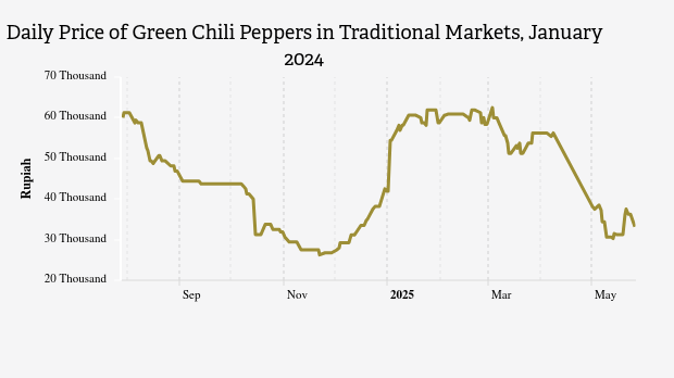 Daily Price of Green Chili Peppers in Traditional Markets, February 2024-2025