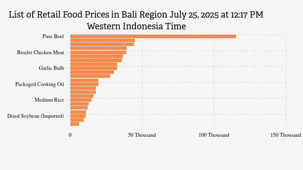 Below is the complete list of 23 food commodities prices in Bali according to Bapanas on July 25, 2025, at 12:17 PM Western Indonesia Time.