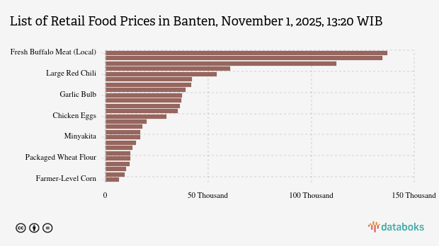 Here is the complete list of prices for 25 food commodities in Banten according to Bapanas on November 1, 2025, at 13:20 WIB.