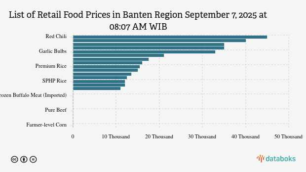 Below is the complete list of 25 food commodity prices in Banten according to Bapanas on September 7, 2025 at 08:07 AM WIB.